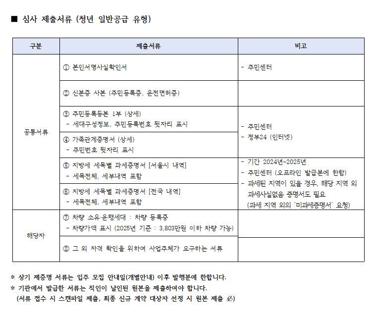 신규임차인 모집 관련 '청년 일반공급 유형 제출 서류' 안내드립니다.